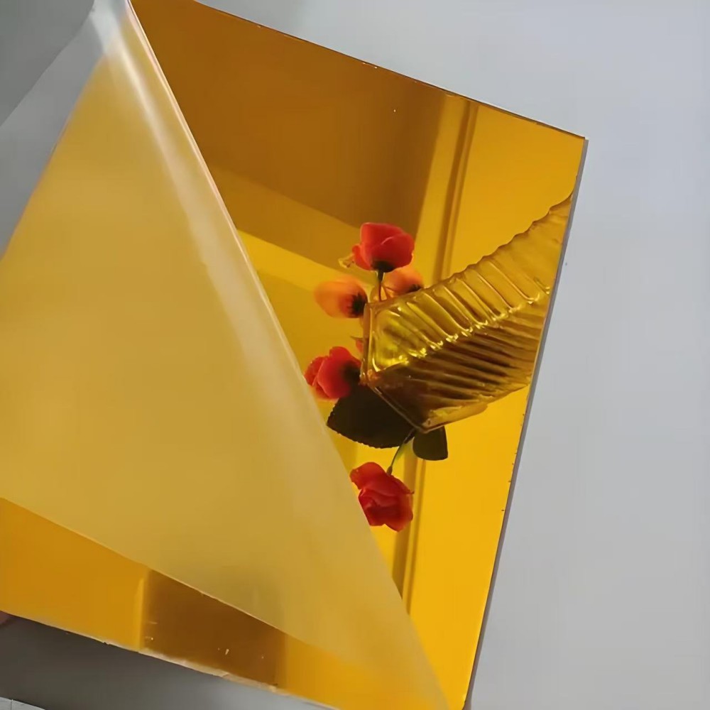 Vysoká propustnost světla a odrazivost:Zlatý zrcadlový akrylátový plech může odrážet i propouštět světlo, což umožňuje vytváření speciálních světelných efektů.