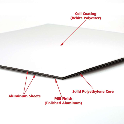 ACM (hliníkový kompozitní materiál)neboAKT (hliníkový kompozitní panel)Skládá se ze dvou hliníkových listů spojených s pevným polyethylenovým jádrem. Obecně se používá ve stavebnictví, značení a opláštění díky své lehké, trvanlivosti a estetické přitažlivosti.